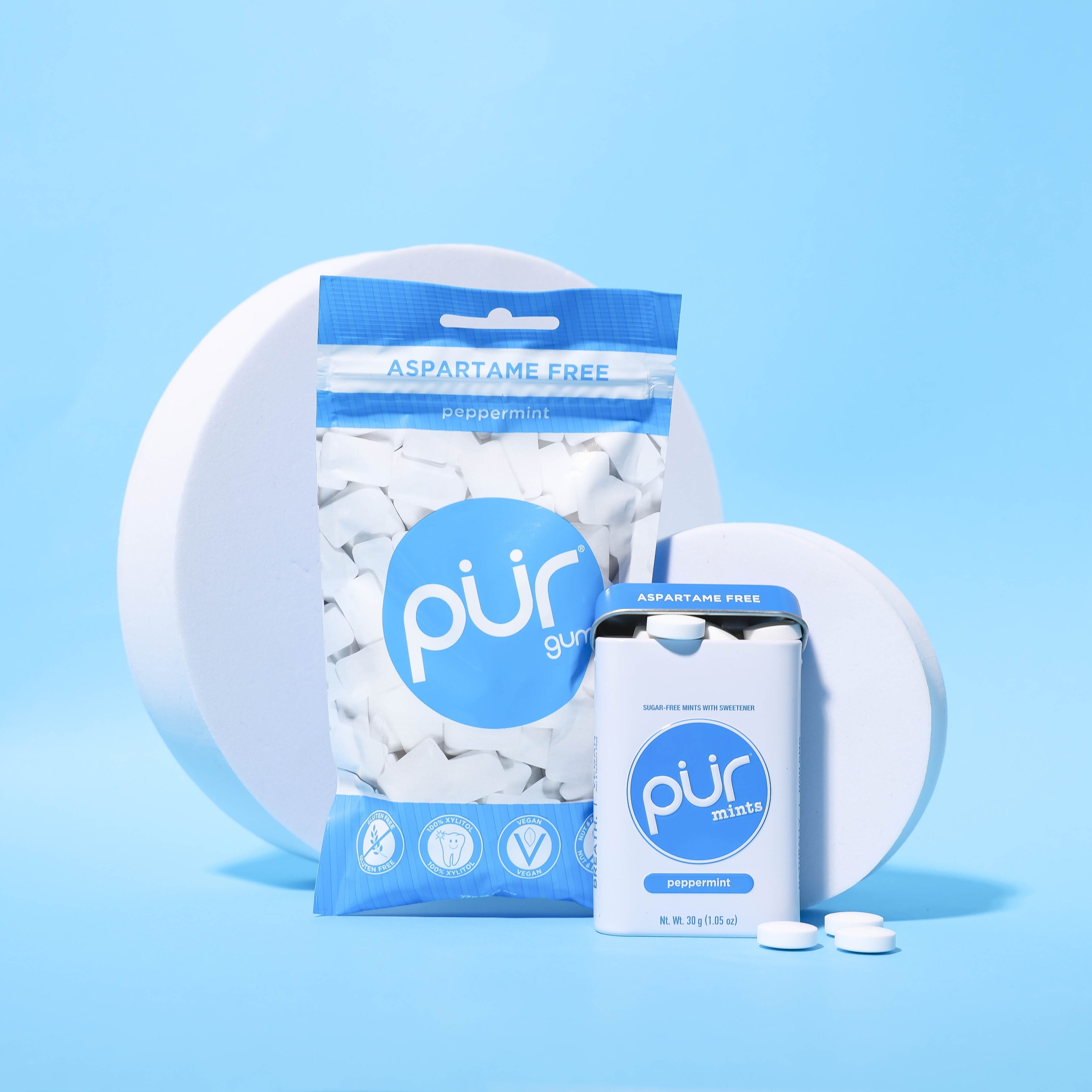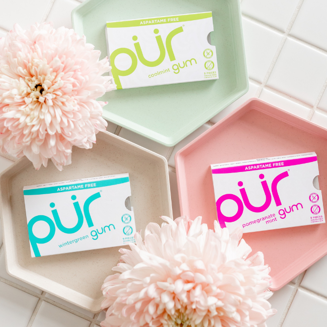 PUR gum & mints are Aspartame Free and Naturally Sweetened with 100% Xylitol.