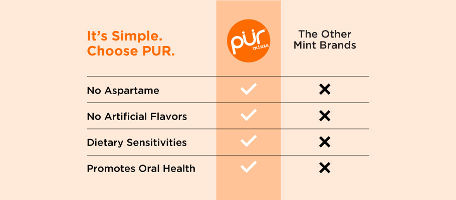 PUR is naturally sweetened with 100% xylitol, which is one of the lowest sweeteners on the glycemic index. Everyone can safely chew PUR without spiking blood sugar levels.